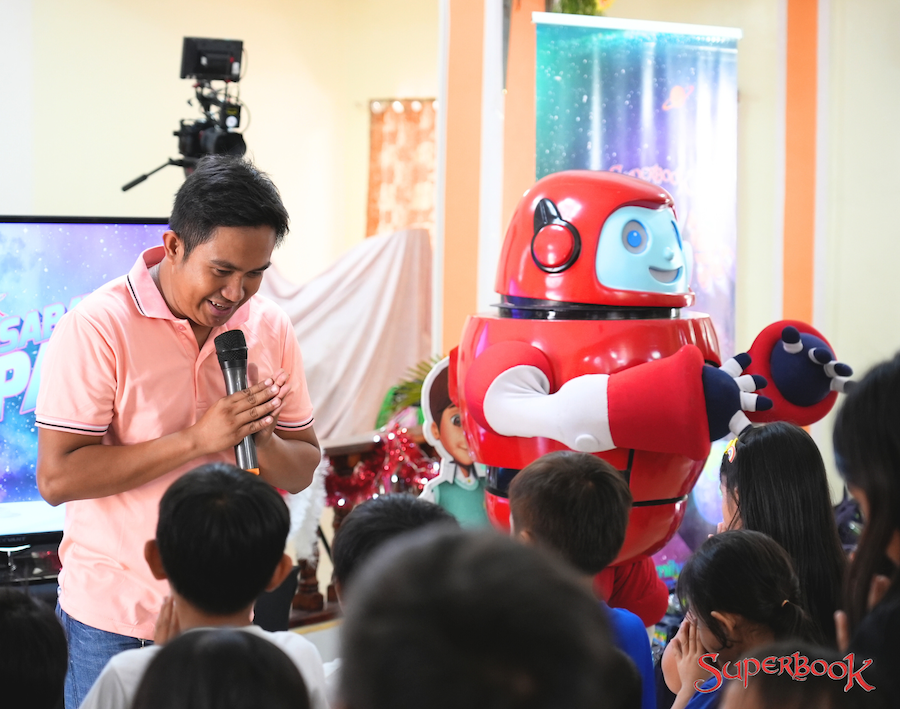 After watching Superbook, Dylan participated in a fun game to save Gizmo from being trapped in the spaceship. The children’s mission was successful because soon after, their beloved robot friend Gizmo came out and greeted them!