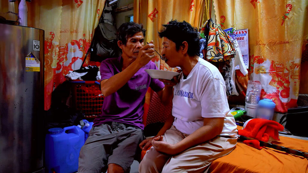 Primo’s love in action is displayed daily by taking care of his wife. He prepares meals and bathes her in the early hours of the morning before heading to work at a steel fabrication shop.